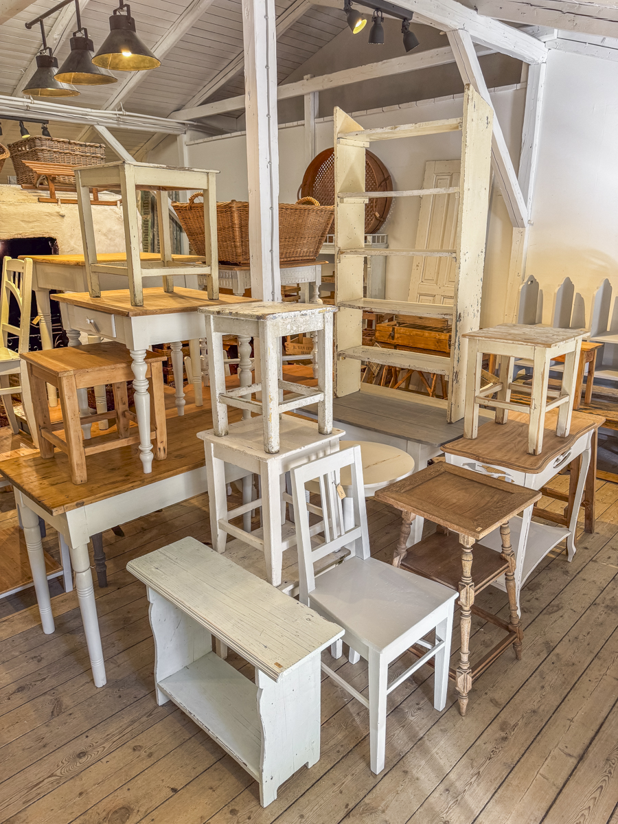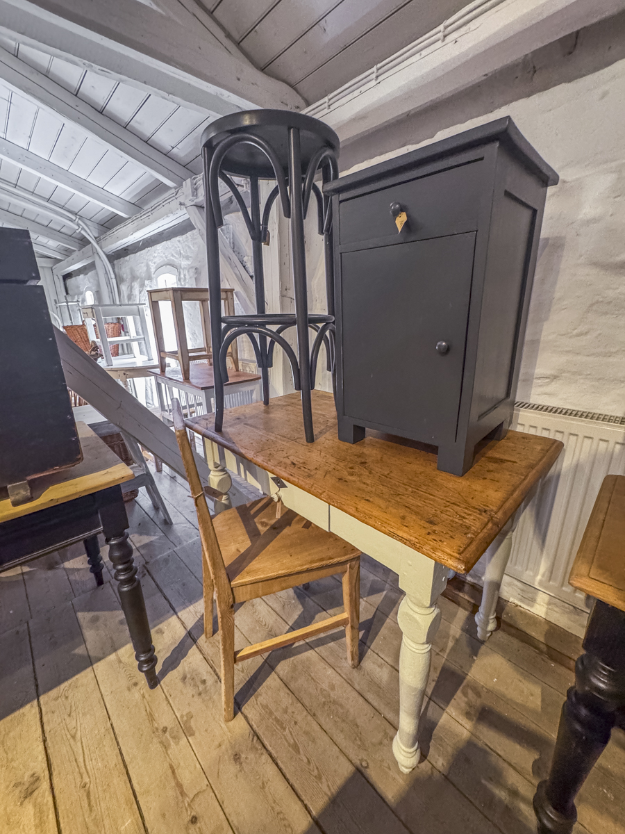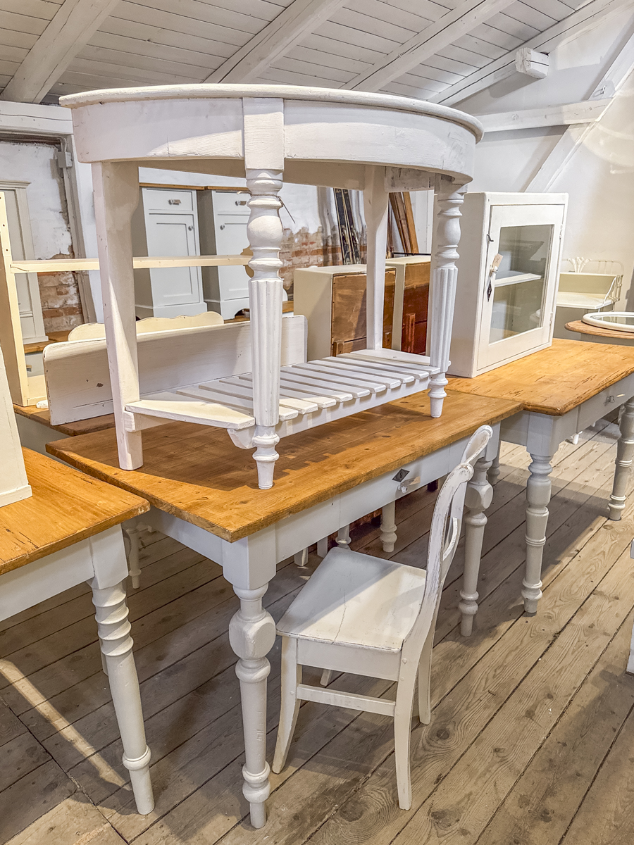 Hier finden Sie Schnappschüsse aus unserem Geschäft vom 22.04.2026. Wenn Sie Interesse an einigen Stücken haben, können Sie gerne unser Kontaktformular für Verfügbarkeits- und Preisanfragen nutzen. Wir werden schnellstmöglich antworten. Bitte nehmen Sie Rücksicht bei der Menge der angefragten Möbelstücke.