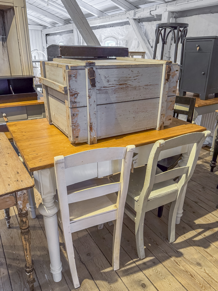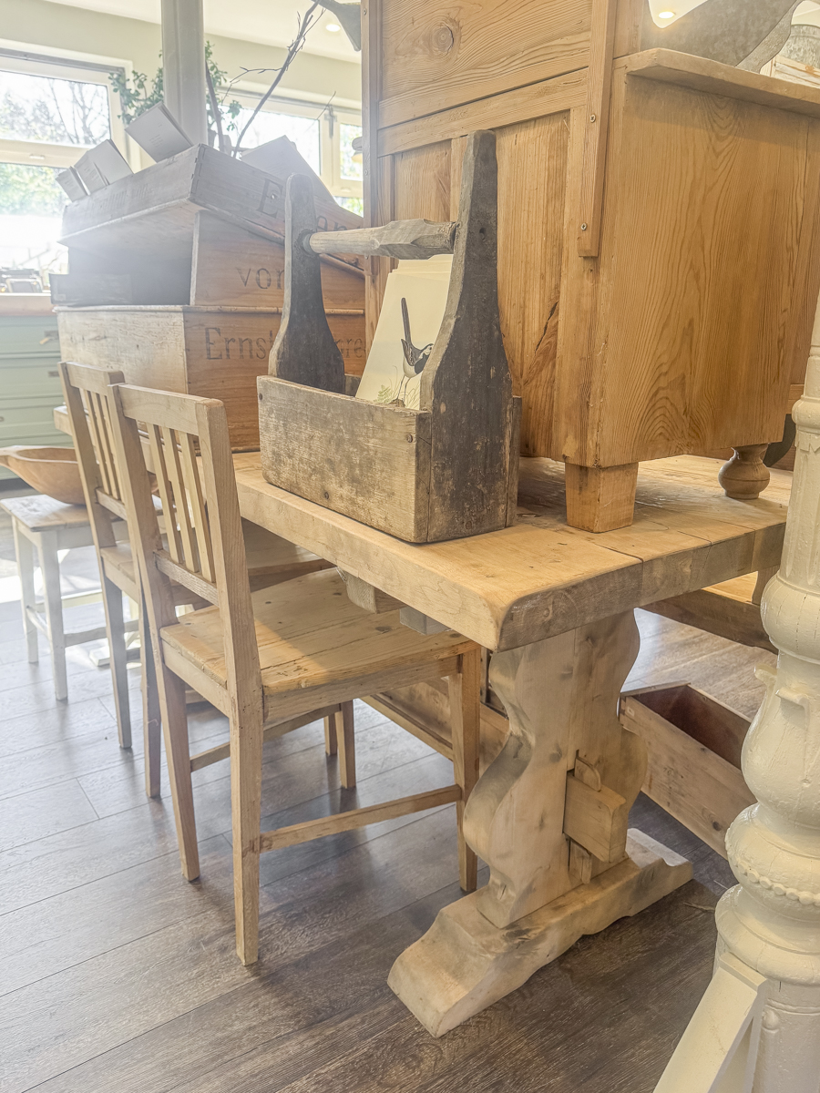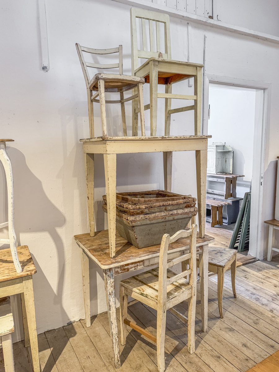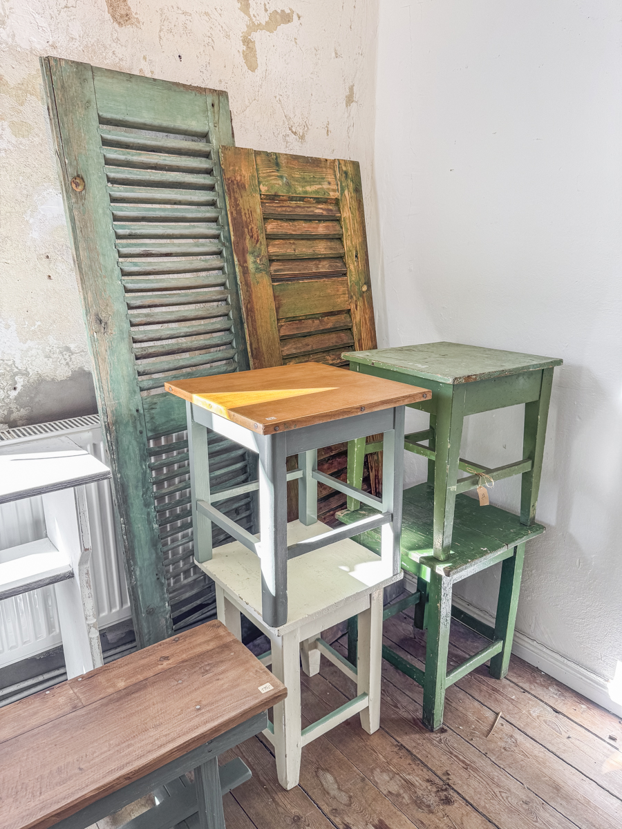 Hier finden Sie Schnappschüsse aus unserem Geschäft vom 22.04.2026. Wenn Sie Interesse an einigen Stücken haben, können Sie gerne unser Kontaktformular für Verfügbarkeits- und Preisanfragen nutzen. Wir werden schnellstmöglich antworten. Bitte nehmen Sie Rücksicht bei der Menge der angefragten Möbelstücke.